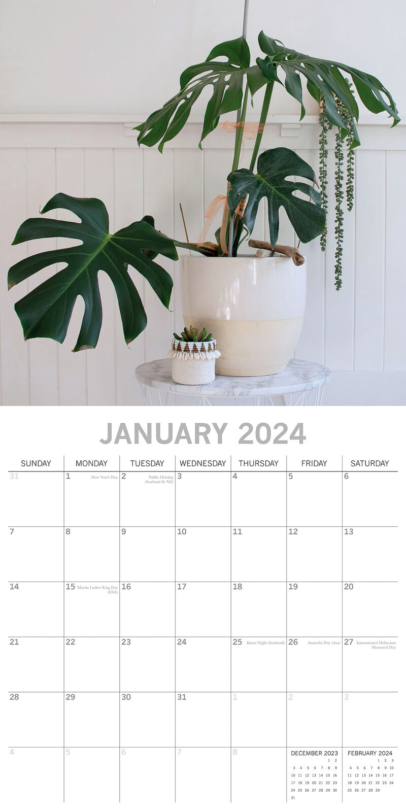 House Plants - 2024 Square Wall Calendar 16 Months Floral Flower Planner New Year Gift