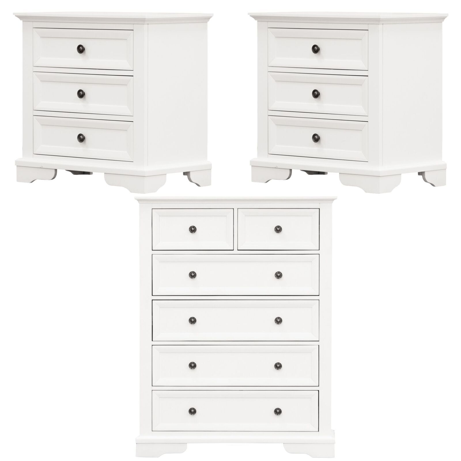 Stop wasting time worrying about where to keep that diary that you need in your bedroom on a regular basis. Bring home this 3-drawer bedside table and solve your bedroom's storage space problem forever. The bedside, designed in a coastal style, is an excellent addition to your bedroom. Its drawers have full metal extension runners and shiny, black metal knobs. The top drawer has black felt for the safe storage of delicate items. The bedside table is made of sustainably harvested solid acacia timber. The wood is known for its good looks, shock-resistance, and durability. The furniture piece in a white painted finish goes well with a variety of interior decor styles, and a one-year warranty is included with the fully-assembled bedside.