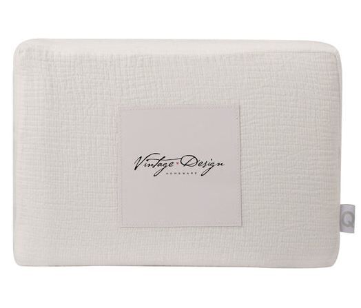 Woven gauze bedding composed of two thin layers of cotton woven together by invisible stitches at regular intervals, giving it a light airy feel