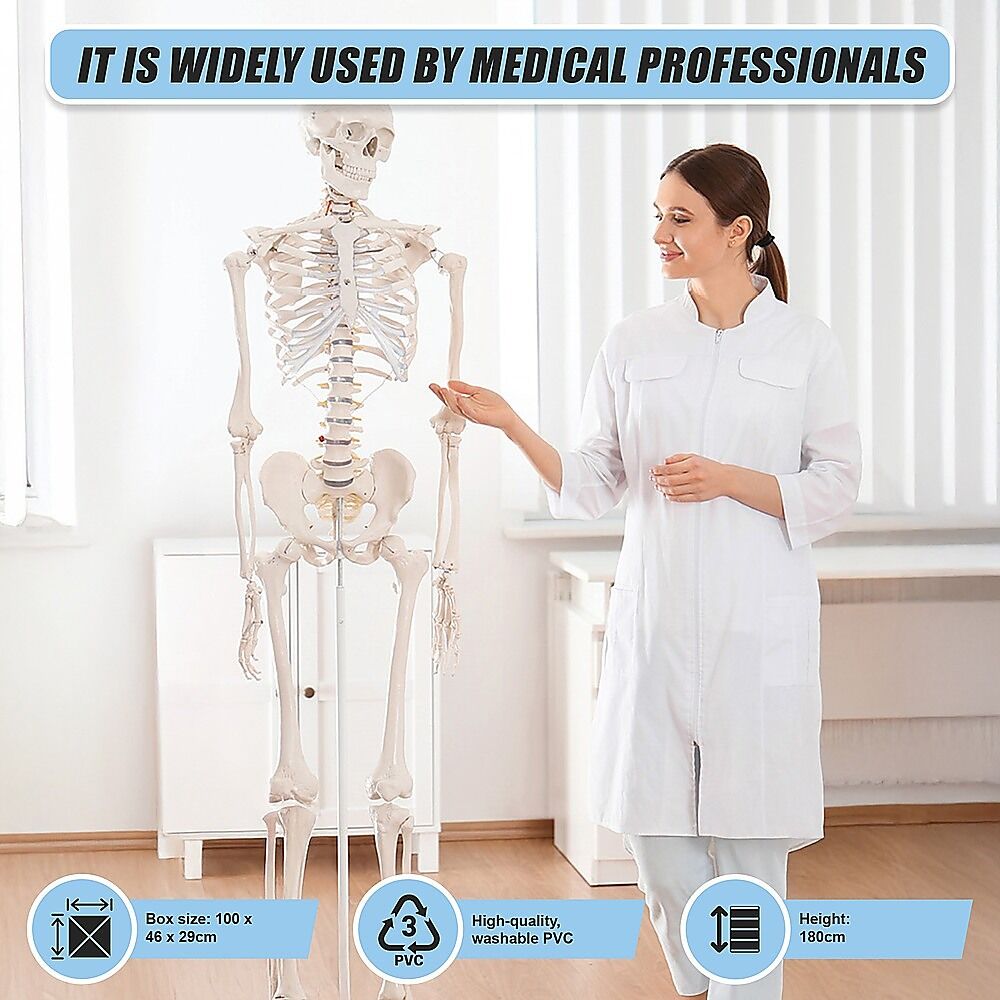 Any student of anatomy from beginner to physician will benefit from owning this adult life-sized Human Skeleton. It is widely used by medical professionals, teachers and artists alike.