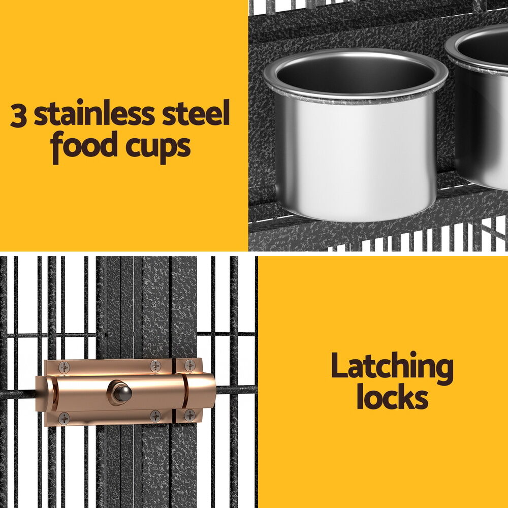 $1,425.97Give your large bird the space it needs to fly and thrive with the i.Pet Bird Cage. Our walk-in aviary is perfect for the care of large birds, reptiles or even as a temporary shelter for your family dog. Made from durable wrought iron with a protective coating, this cage ensures long-lasting use and resistance against rust and corrosion. The cage features a large walk-in door for easy access and simple cleaning. The swing-out feeder doors and three stainless steel food cups provide a convenient feeding solution, so you can feed your pets without entering the cage. With latched locks, your pets will be safe and secure inside the cage. The aviary is perfect for large birds like parrots, macaws, and cockatoos, offering them ample space to move around and exercise throughout the day. Give your pets the ideal home with the i.Pet Bird Cage.