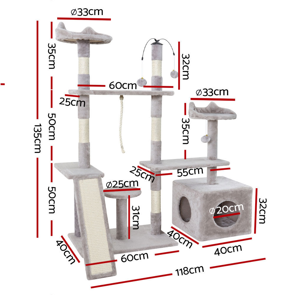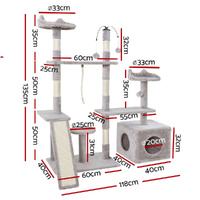 Our cat tree will let your feline friend play out its natural instinctive behaviour. It features a 4-level design with play cubicles, jumping platform, activity balls, sisal rope, sisal posts, and sisal claw board. This cat tree offers unlimited opportunities to provide your pets with fun-filled moments and keep them healthy. It also has comfortable velvet upholstered surfaces, ideal for napping after a long playtime. Furthermore, the sisal claw board is perfect for your pets to scratch and claw and keeps their claws healthy and distracts them from scratching the furniture. Crafted from wood with sisal rope, posts, and claw board, our cat tree is both pet and eco-friendly.