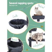 $86.47Built to satisfy the natural instincts of your precious pet, our i.Pet Cat Tree includes a host of nooks and crannies for your cats to have hours of fun scratching, hunting, climbing, jumping, hopping or simply lounging around. Hanging balls also keep your cat curious and alert. Uses woven sisal twine towers so you can rest assured that your furniture will stay cat scratch free. Not least, the tree is upholstered with a plush scent- and chemical-free velvety surface for extra comfort and style. Best of all, the firm base and sturdy construction ensure that the tree remains a durable cat haven with total peace of mind for you. Can we hear a meow to that?