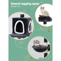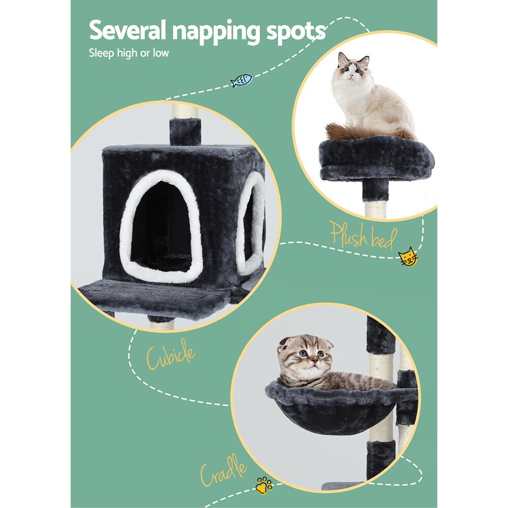 $71.43Built to satisfy the natural instincts of your precious pet, our i.Pet Alice Cat Tree includes a host of nooks and crannies for your cats to have hours of fun scratching, hunting, climbing, jumping, hopping or simply lounging around. Hanging balls also keep your cat curious and alert. Uses woven sisal twine towers so you can rest assured that your furniture will stay cat scratch free. Two hammocks and two enclosed caves help your cat nap comfortably and safely. The tree is upholstered with a plush scent- and chemical-free velvety surface for extra comfort and style. Best of all, the firm base and sturdy construction ensure that the tree remains a durable cat haven with total peace of mind for you. Can we hear a meow to that?