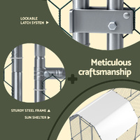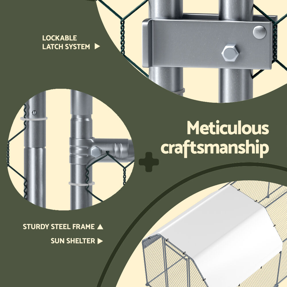 $454.49Give your beloved pets a safe and comfortable home to sleep, rest, and relax. The i.Pet's chicken coop has a spacious area to move around freely, which prevents them from feeling trapped or restricted. Not just for chickens, this pet cage makes a great home for geese and ducks too. It's constructed from a galvanised steel material for durable and long-lasting use. And wire sidewalls allow proper airflow and good ventilation. Nonetheless, the weather-resistant roof is perfect for keeping your pets safe during harsh weather conditions.