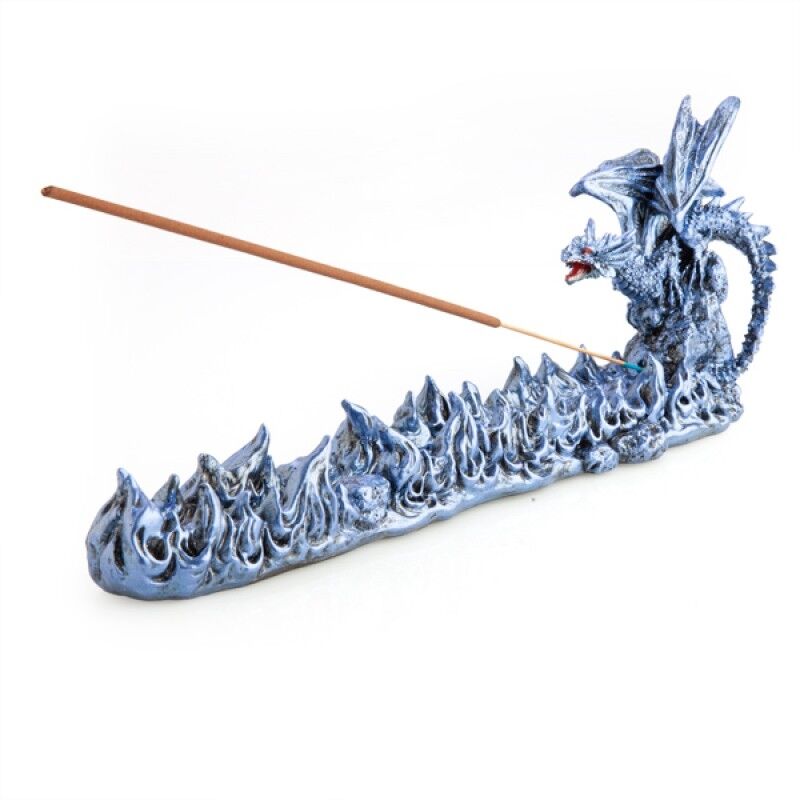 Ice dragon incense burner featuring a flaming tray to catch falling ashes