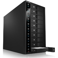 The locks on each HDD tray offer security and protection from accidental removal of the hard drives. They may instead be switched on and off individually with the power buttons on each tray. The LEDs displays additionally show the status of each HDD.