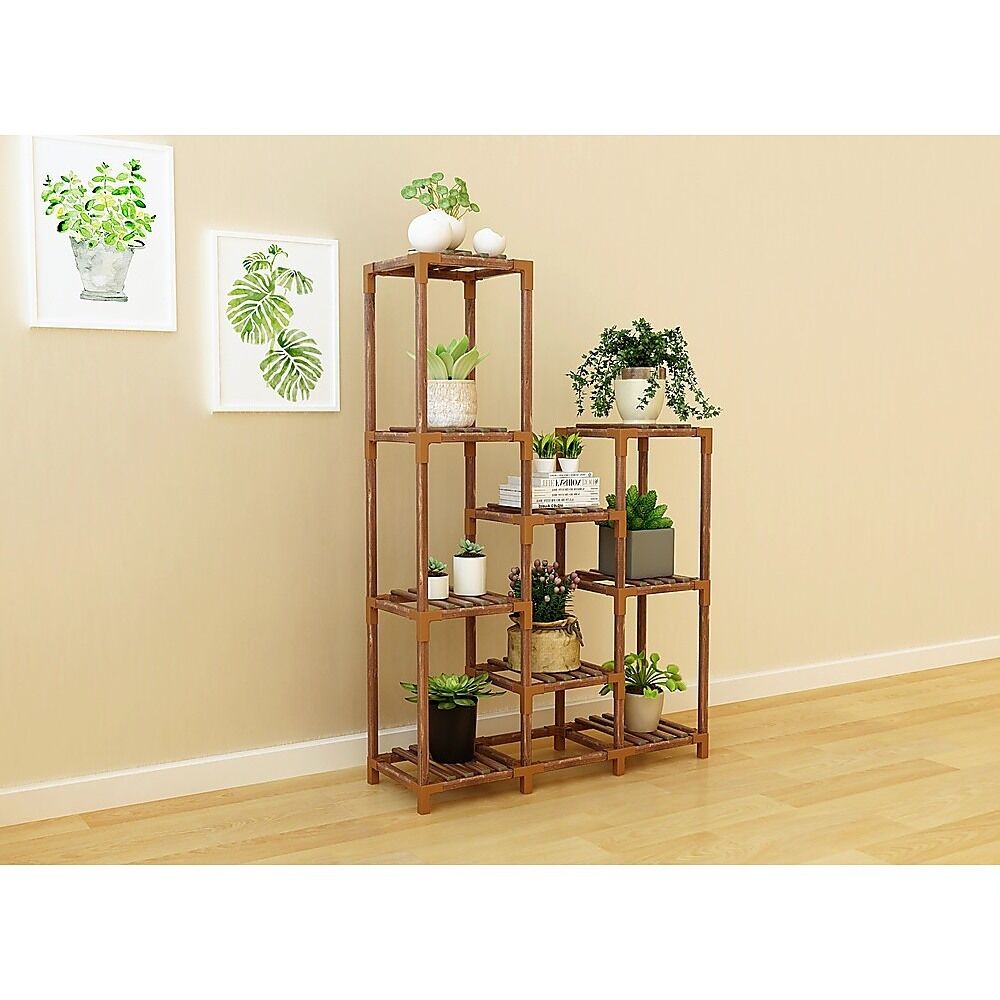 If you love plants, an attractive plant stand is a must to showcase their natural beauty. With this lovely wood plant stand by Randy & Travis Machinery, you can display plants, works of art, or other collectibles in a natural setting that will complement any interior with its neutral, minimalist profile. Its airy design allows all the sunshine your plants need to pour in, while providing plenty of space between the shelves for your plants to grow.The stained surface resists moisture, making it suitable for use outdoors on your patio or garden. The slats in the shelves allow water to drain out, avoiding overwatering issues. With generous space between the slats, air can circulate around your plants, helping them resist mould and get all the life-giving carbon dioxide they need to thrive from the air. It's the perfect gift for the plant lovers in your life – and makes a gorgeous focal point in your home or on your patio. Order yours today!