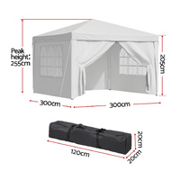 The Instahut Pop Up Gazebo Vendor Tent is the perfect portable item for outdoor adventures, and activities. Featuring a quick and easy setup, durable weather-resistant construction, and 3 adjustable height, this versatile canopy provides reliable shade and protection wherever you need it - from the beach to the backyard. You can enjoy your holiday while the compact folding design with the spacious 3x3m coverage. Crafted with premium materials and built to withstand the elements, the Instahut Pop Up Gazebo Tent is a must-have companion for family camping trips, vendor stalls, school functions.