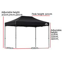 Featuring high density, long lasting PU coating oxford fabric with effective UV and water repellent treatments, this INSTAHUT 3X4.5 Pop Up Gazebo provides a lovely ground and canopy coverage of 300 x 300cm. It is perfect for all your upcoming outdoor activities, as a sunshade station as well as a shelter for unexpected rains.