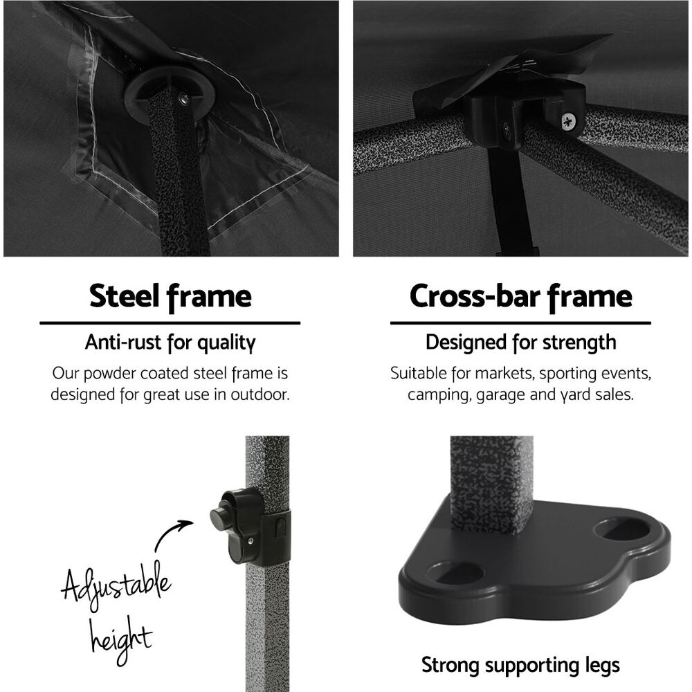 adjustable height levels to suit different height needs. It is ideal for markets, sporting events, camping, garage and yard sales, school events, trade shows and many more.