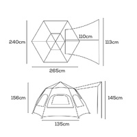 Open tent dimensions: 265cm x 240cm x 156cm (W x D x H)