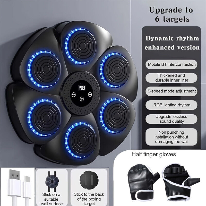 Train smarter and harder with the Intelligent Music Boxing Machine with Gloves, the perfect interactive gear for home workouts and reflex training. Designed for fitness enthusiasts and boxing beginners alike, this wall-mounted boxing target machine uses music rhythm to improve your speed, coordination, and agility. It includes a pair of boxing gloves and features a wireless, USB-rechargeable system for hassle-free use.