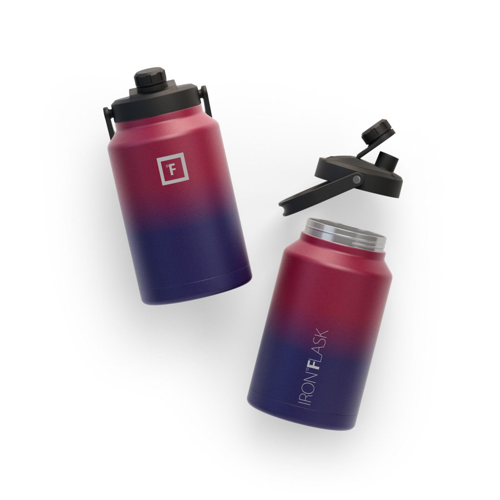 $125.95Iron Flask Bottle with Spout Lid, Dark Rainbow, 128oz/3800ml. Whoever said “bigger isn’t always better” obviously never got their hands on an Iron Flask One-Gallon Water Bottle. This titan of thirst quenching holds a whopping 128 oz of your favourite beverage in a vacuum-insulated, rough-and-tumble container that can stand up to any adventure. And with a huge array of colors, it’s easy to match your bottle to your personal brand. With the Iron Flask 128 oz water bottle, the only thing you need to worry about is how close you are to a bathroom.