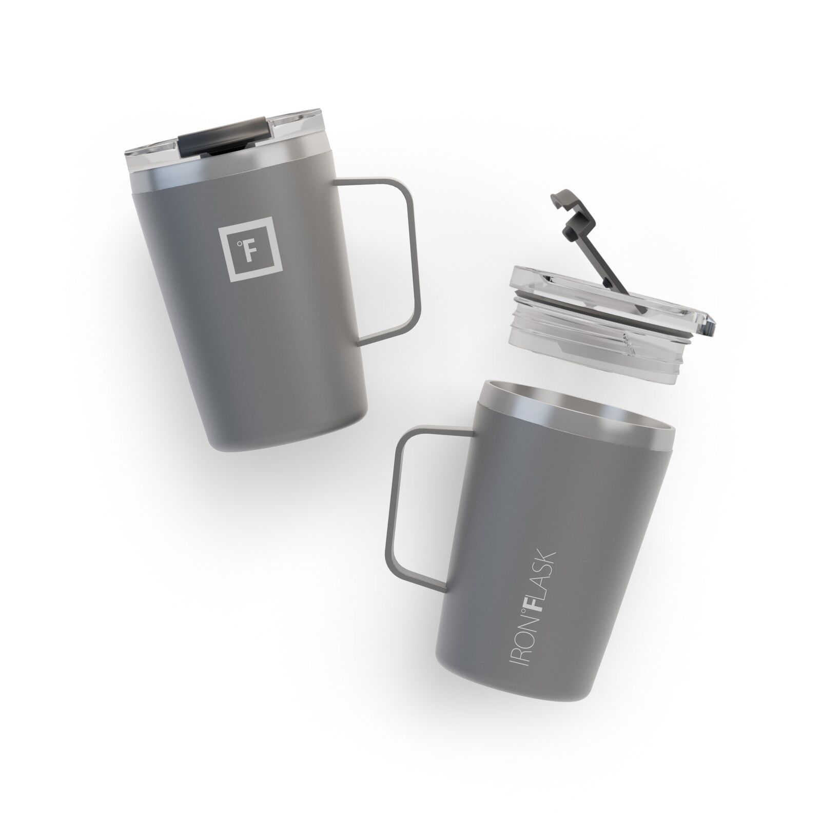 $42.29Iron Flask Grip Coffee Mug, Graphite, 12oz/350ml. Let Iron Flask help you get a grip. Our 12 oz Grip Coffee Mug gives you two hours of piping hot tea or magic bean juice in a double-wall-insulated stainless steel coffee mug. Each grip mug is powder-coated in a variety of colors and is 100% leak-proof, so you can drink your java in style without worrying about a coffee-stained wardrobe.