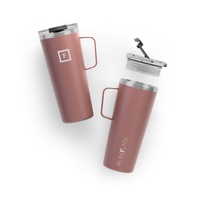 $50.75Iron Flask Grip Coffee Mug, Rose Gold, 24oz/700ml. For the days that require an extra oomph, there’s the Iron Flask 24 oz Grip Coffee Mug, which comes in a variety of colorful powder coatings for strength and style. Iron Flask’s travel coffee mugs are made with double-walled, vacuum-insulated stainless steel to keep your Ethiopian Ghimbi or London Fog nice and hot for four hours—with no mug sweat. Plus, it’s 100% leak-proof, so you never waste any of that precious, precious oomph.
