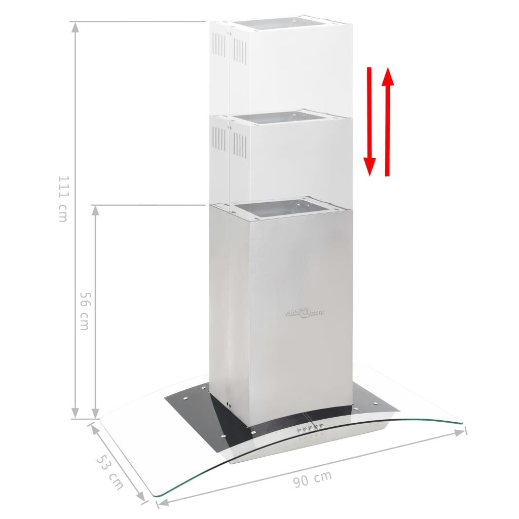 Our low-noise and powerful island range hood is ideal for effectively extracting smoke, grease, moisture and even heat from your kitchen. Its stainless steel housing is combined with a sleek, curved tempered glass canopy, giving your kitchen a stylish and modern look. This island hood is equipped with two 3-layer washable aluminium grease filters to protect the inside of the extractor hood and the exhaust pipe from grease. The built-in LED lights provide excellent illumination, to help with cooking and also to create a nice ambience in your kitchen. The extractor hood has 3 variable speeds to ensure you have a full control over the extraction rate and a charcoal filter that will help purify the air and release the cleaned air back into the kitchen, whilst external extraction transfers cooking odours to outside with the help of the included exhaust pipe. Assembly is easy. The island hood fits well in an open kitchen with a cooking island as a standalone hood, but can also be used if you do not have a cooking island.