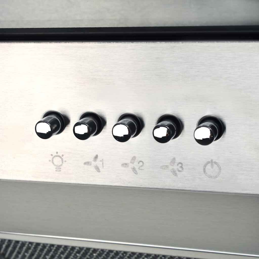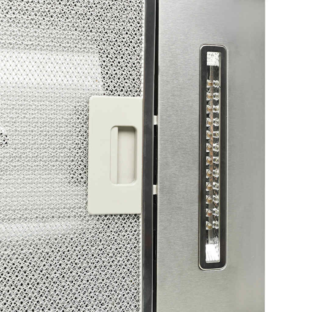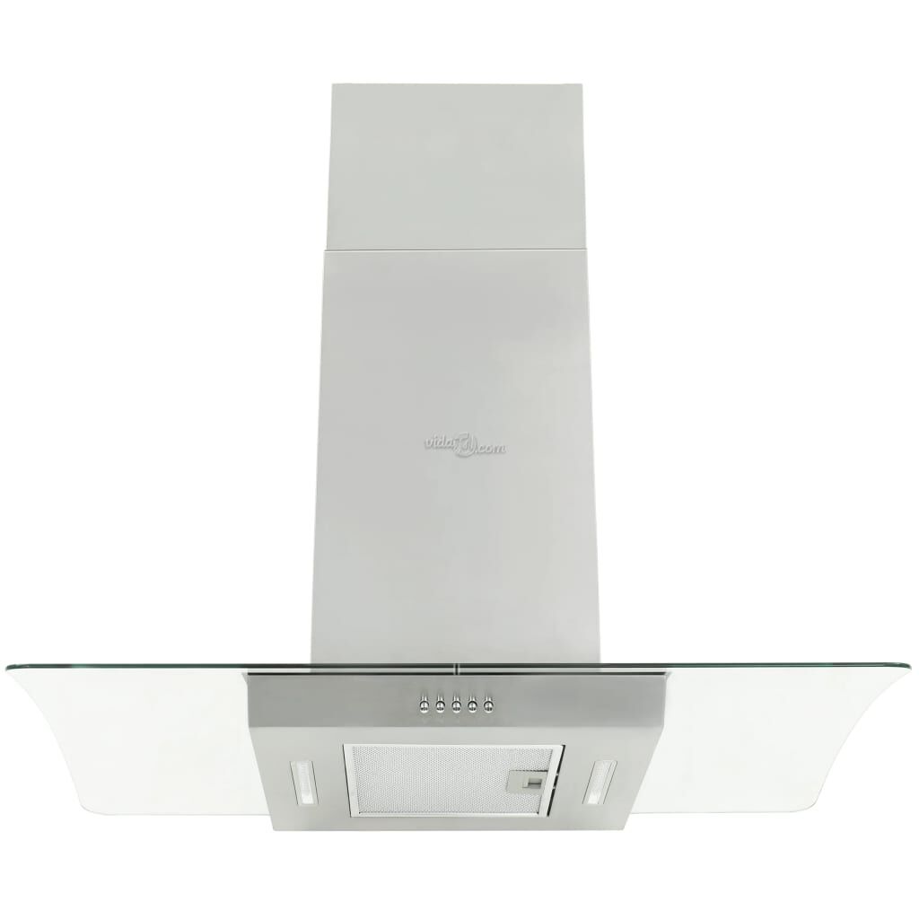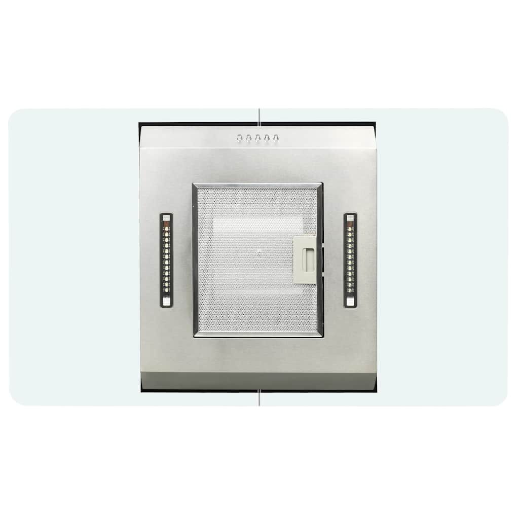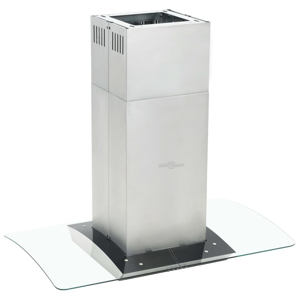 Our low-noise and powerful island range hood is ideal for effectively extracting smoke, grease, moisture and even heat from your kitchen. Its stainless steel housing is combined with a sleek, curved tempered glass canopy, giving your kitchen a stylish and modern look. This chimney hood is equipped with a 3-layer washable aluminium grease filter to protect the inside of the extractor hood and the exhaust pipe from grease. The built-in LED lights provide excellent illumination, to help with cooking and also to create a nice ambience in your kitchen. The extractor hood has 3 variable speeds to ensure you have a full control over the extraction rate and a charcoal filter that will help purify the air and release the cleaned air back into the kitchen, whilst external extraction transfers cooking odours to outside with the help of the included exhaust pipe. Assembly is easy. The island hood fits well in an open kitchen with a cooking island as a standalone hood, but can also be used if you do not have a cooking island.