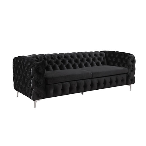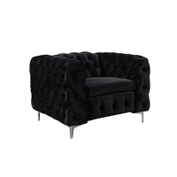 Package contents: 1x3+2+1 Seater Sofa Classic Button Tufted Lounge in Black Velvet Fabric with Metal Legs