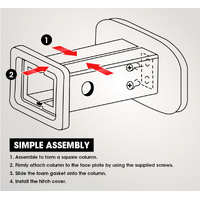 This hitch receiver extension is ready to fit a novelty tow hitch cover. Using a 5/8' hitch pin (not supplied) you can extend the receiver between 40-180mm from your standard 2' receiver. It is constructed of high-density plastic for 100% rust resistance.