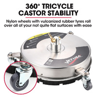 It's constructed from 304 Stainless steel for corrosion resistance and durability. With smooth rolling nylon castors it is the ideal tool for any of your flat surfaces, wooden decks, concrete drives and paths, brick and tiled patios, pool decks, and any other flat durable surface that requires cleaning.