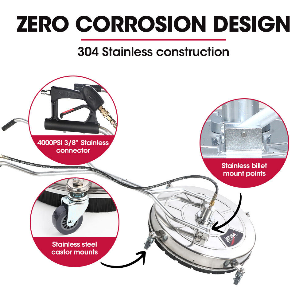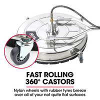 $653.29The Jet-USA 24' Stainless Steel Pressure Washer Surface Cleaner Attachment is the perfect tool to clean your concrete driveway, patio, deck or garage floor. This easy gliding disk puts powerful cleaning and ease of use at your disposal with the super-wide 61cm cleaning area.