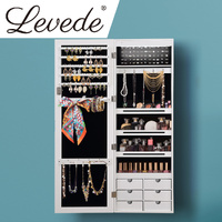 It's not only a full-length mirror, but also a Jewellery Cabinet. It's a true reflection of beauty! It can be wall mounted if space is limited. And it can also hang on the door. The classic design works well with any style of bedroom. Open it and it's a beauty wonderland. You'll find ample storage space for your jewellery pieces with slots for earrings and rings, hooks for necklaces, rod for scarf, pouches for cosmetic brushes, shelves for various items.