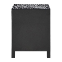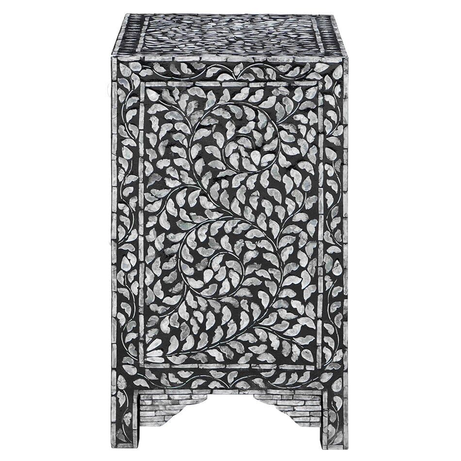 NOW $383.47Elegant and inspired, our Jordan shell inlay chest is a furniture piece with a real point of difference. Handmade from original mother of pearl pieces, with a unique floral design, it is boho inspired and features a striking black and cream contrast. Perfect for bedrooms and living rooms alike, this chest consists of a large upper drawer and a lower cupboard, making it an ideal piece for extra storage in a living area or bedroom.