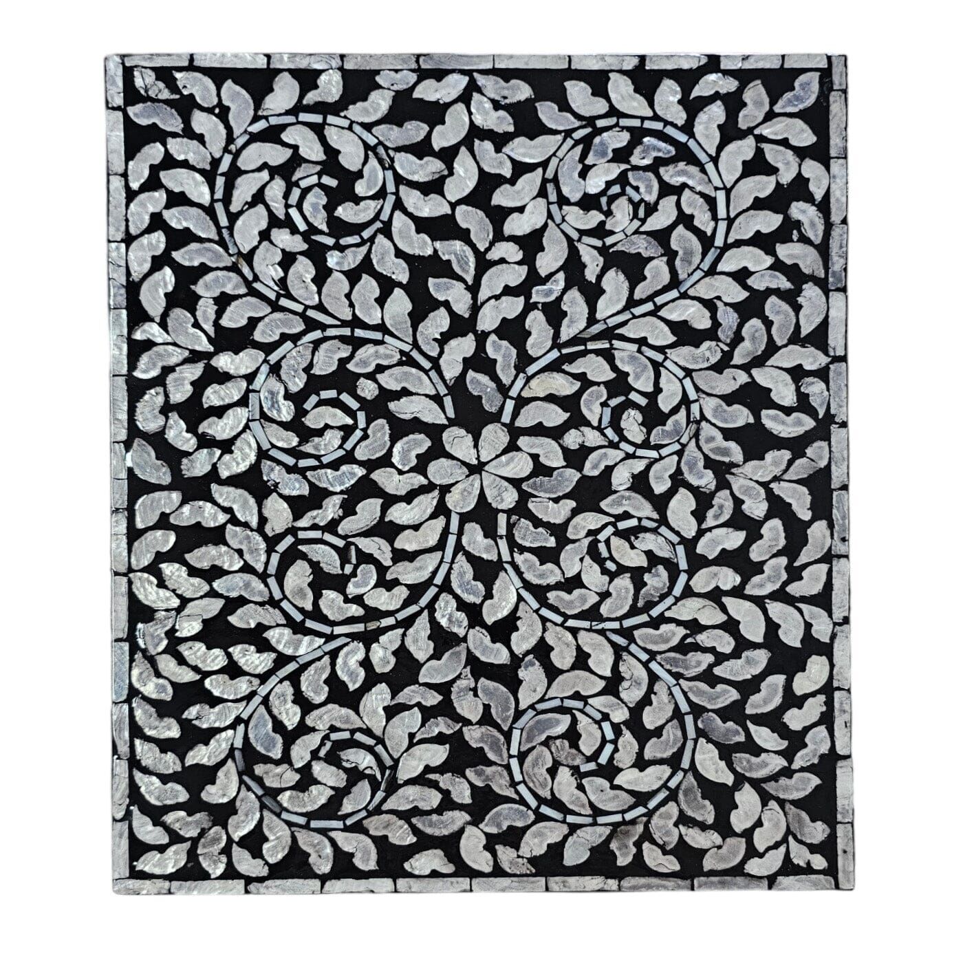 Our hand-crafted Mother of Pearl furniture is expertly crafted, imparting each piece with a unique character of its own. Such pieces may bear small markings, smudges, glue spots, and other subtle details all of which contribute to its one-of-a-kind look. Patterns may differ from those shown in its original photos. Note that these details are not faults and are instead part of the charm of such hand-crafted items. To maintain these pieces, they should not be used outdoors, nor should cleaning chemicals be used. Instead, use a lint-free cloth, and also make sure not to place these pieces near heat or sunlight, as this may cause fading.