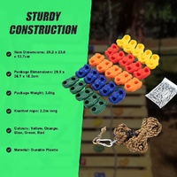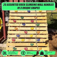 These rock climbing wall holds are a breeze to set up. The kit includes an instruction guide, nuts, bolts, and washers, making installation straightforward.This set features a set of rope with 25 assorted rock climbing wall handles in 3 unique shapes and 5 vibrant colours: blue, green, red, yellow, and orange.Made from high-caliber, durable plastic, our rock wall holds are designed to withstand outdoor weather conditions and are perfect for indoor use as well. Add it to any indoor climbing wall, obstacle course, or treehouse to enhance playtime.