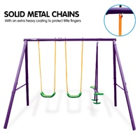 With ground anchors and a solid metal frame, this swing set is extremely strong and durable. The metal chains are covered to protect little fingers, while the frame is powder-coated to keep rust and corrosion at bay. Not least, the swing seats are easy to clean and made of eco-friendly HDPE plastic. Rain or shine, you don't have to worry about keeping your swing set looking brand new!