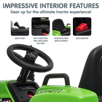 Kahuna MX-611 Kids Electric Ride On Tractor Trailer Car Green Grey