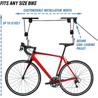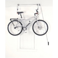 Effective bike hoist for suspending all kinds of pushbike for simple storage in confined areas. Ideal for garages, sheds, workshops and basements. Powder-coated steel construction for durability and corrosion resistance.
