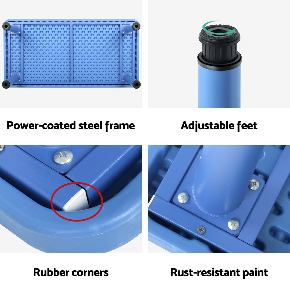 NOW $165.56If your kids love getting creative, you'll love the Keezi Kids Activity Table and Chair Set. It may look like a simple setup, but with a powder-coated steel frame and high-quality HDPE plastic exterior, the set is built for heavy-duty, long-lasting use. The set is coated with rust-resistant paint, features upgraded rounded corners for safety and comes with 8 chairs for the perfect play date. The table has a 100kg weight capacity to hold everything your child needs, and each chair has a weight capacity of 50kg. Adjustable feet ensure the table is always the perfect height for your children to play, draw, read, write or craft. You can easily use the set indoors or outdoors – whatever the day requires. The chairs feature a stackable design so you can easily store them away at the end of the day. Best of all, the set is EN71 European Safety of Toys certified, so you can rest assured you made the right choice for your children. No matter the activity, the Keezi Kids Activity Table and Chair Set are ready for action.