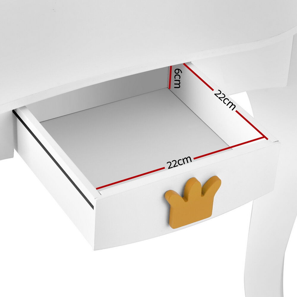 Introducing our Keezi Kids Dressing Table: crafted from high-quality MDF board, designed with rounded corners for safety, and easy-to-clean surfaces. Perfect for creating a safe and stylish space for young ones to explore and enjoy.