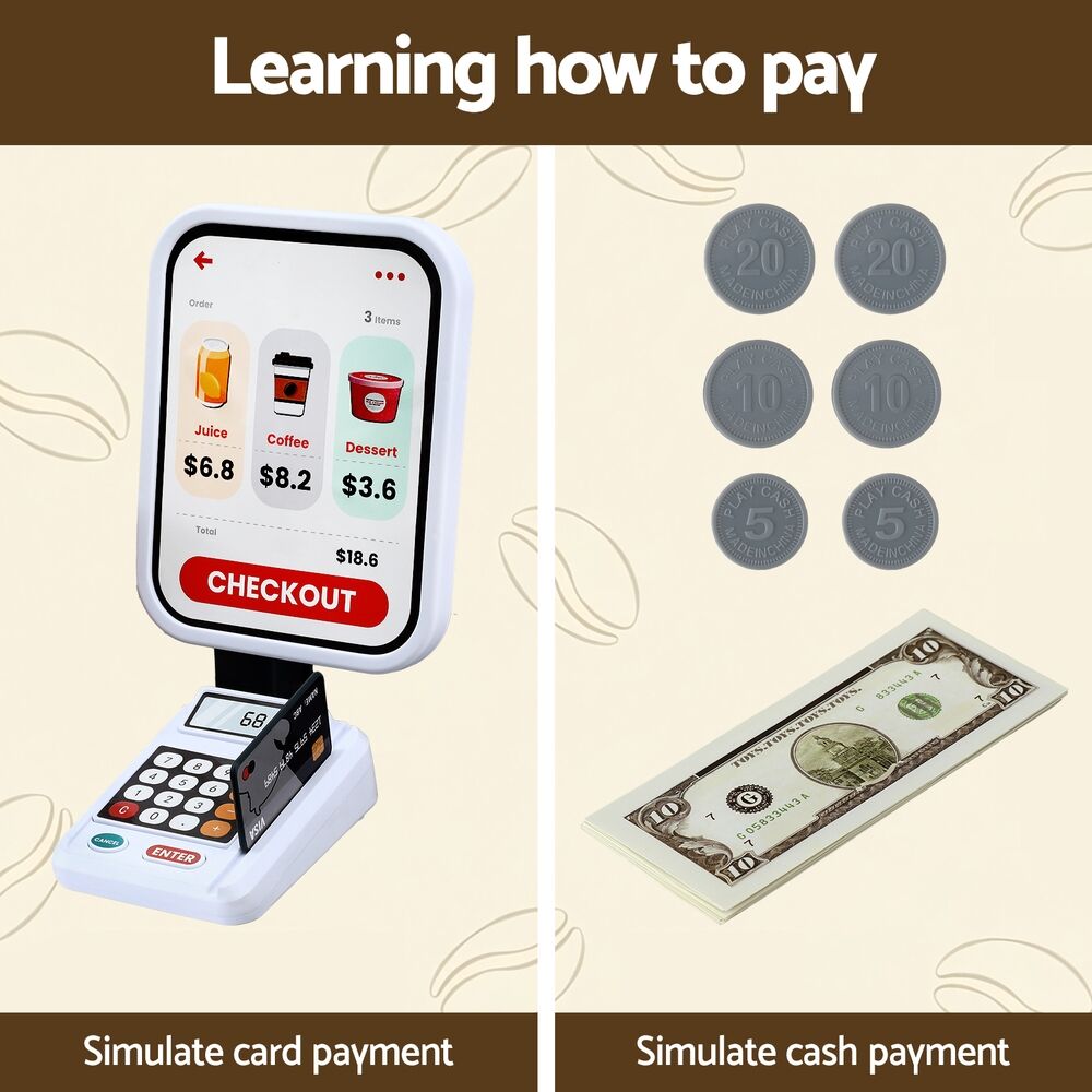 Featuring a colourful supermarket pretend play set with 48pcs accessories, this pretend play set is perfect for kids to perform shopping role plays with friends and parents. The play set comes with a mini barcode scanner with sound and lighting features; just like a real one! While the play set provides plenty of fun during play, it is also an excellent educational learning play set for kids; encouraging teamwork, communication, expression and logic exercises. Let's bring this fun and creative supermarket pretend play set home for your loving ones.