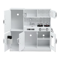 Explore imaginative play with our Keezi Wooden Kitchen Play set. Crafted from sturdy MDF and solid wood with a non-toxic paint finish, it features a smooth surface for easy cleaning. Includes cooking accessories, a fully operational oven door, turnable oven knobs, and a telephone for orders