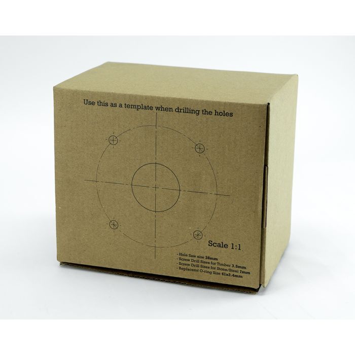 Simply use the template included on the box to drill your countertop with the appropriate holes: x1 38mm hole for the lines and font fan hose, x4 7mm holes for the screws in the font base.