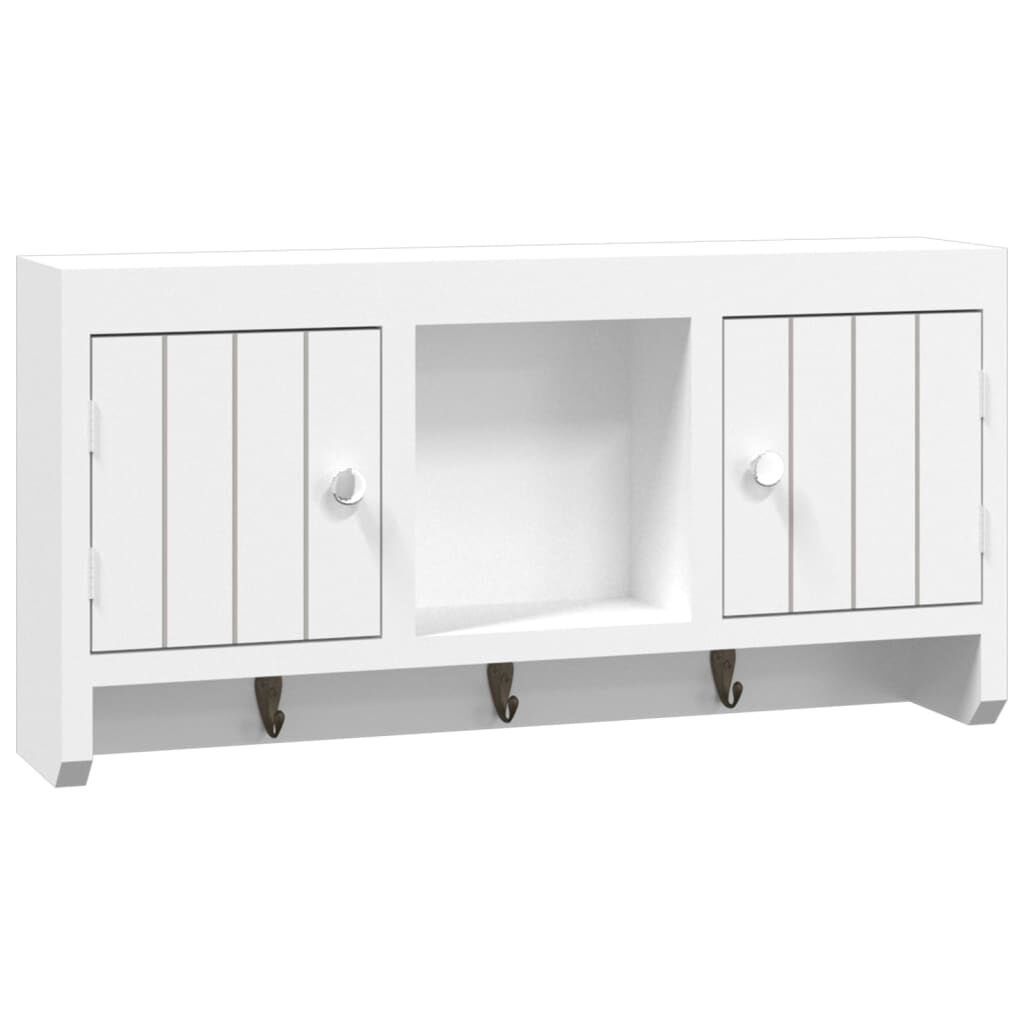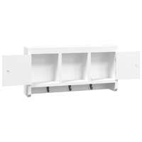 This elegant key cabinet with hooks is an ideal choice for keeping your keys, sunglasses, jewelry, and other accessories organised. Durable material: The engineered wood is of exceptional quality with smooth surface and also features strength, stability and resistance to moisture.Ample storage space: The wall cabinet has 3 steel hooks for placing keys. The 2 compartments with doors and the middle shelf provide plenty of space for storing wallets, mobile phones, sunglasses, jewelry, or other accessories.Wall-mounted design: The wall shelf can be steadily mounted on the wall, which makes it especially suitable for rooms with limited space. Note:Each product comes with an assembly manual in the box for easy assembly.Screw(s) and plug(s) for inside the wall are not included. Seek and use screw(s) and plug(s) suitable for your walls. If you are uncertain, seek professional advice. Read and follow each step of the instruction carefully.