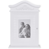 $81.77This key cabinet, featuring a glass photo frame, is a perfect helper for organizing your keys. The six iron hooks inside the cabinet are designed for hanging keys or other bits and pieces. Being that it is easily mounted on the wall, our key cabinet will surely make a great addition to your kitchens, hallways and/or porches. Our key cabinet is constructed from high quality MDF and pinewood with a white painted finish for durability, which will give you years of service.
