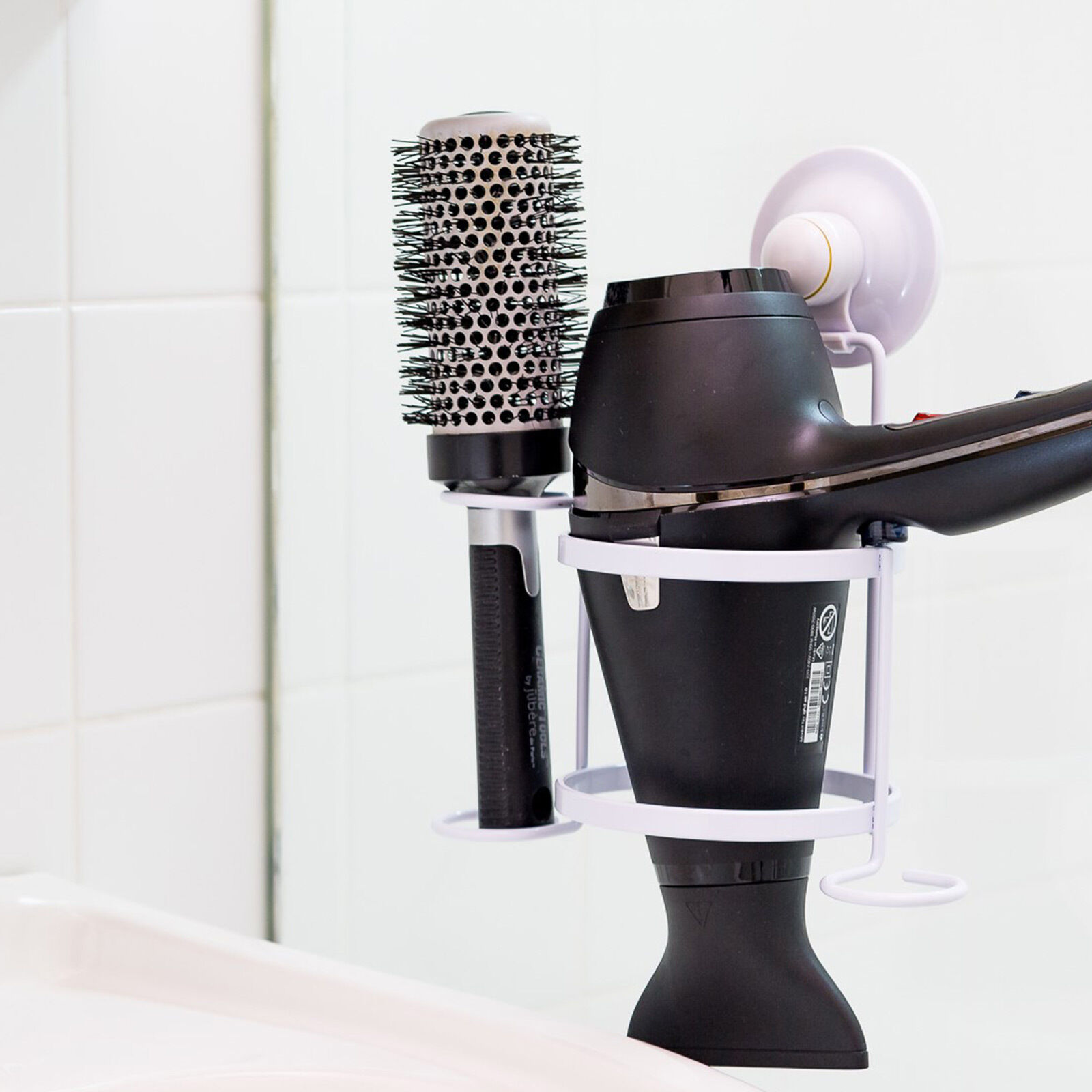 Thanks to the holder, a hairdryer in the bathroom will always be at hand. The design also allows you to place in the holder a shampoo or a bottle, also the side holder allows you to put comb/brushes which is convenience.