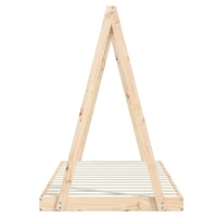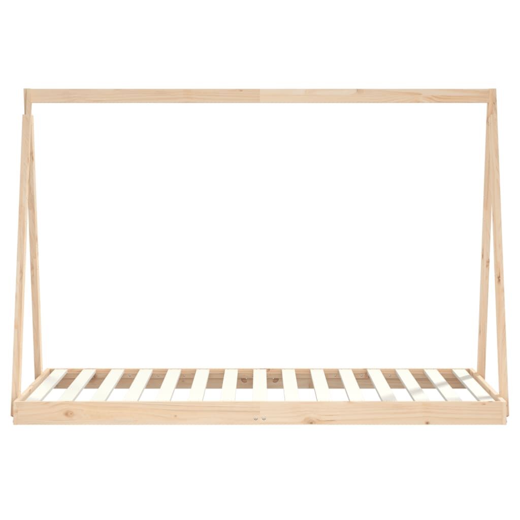 Whether it's planning their next adventure or nodding off to sleep, your little one will love this fantastic wooden kids bed frame! Solid pine wood: The kids bed frame is made from solid pine wood. Solid pine wood is a beautiful natural material. Pine wood has a straight grain, and the knots give the material its signature, rustic look.Sturdy slats: The bed for kids has wooden slats for firm support, ventilation and stability.Tipi bed design: This toddler bed features a novelty crossover framework inspired by the cool tipi-style tents where you can hang bed curtains to create privacy for your kid.Considerate design: The kids single bed frame is directly on the ground, which prevents your younger child from getting hurt or strained when rolling and climbing in or out.