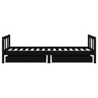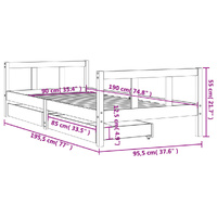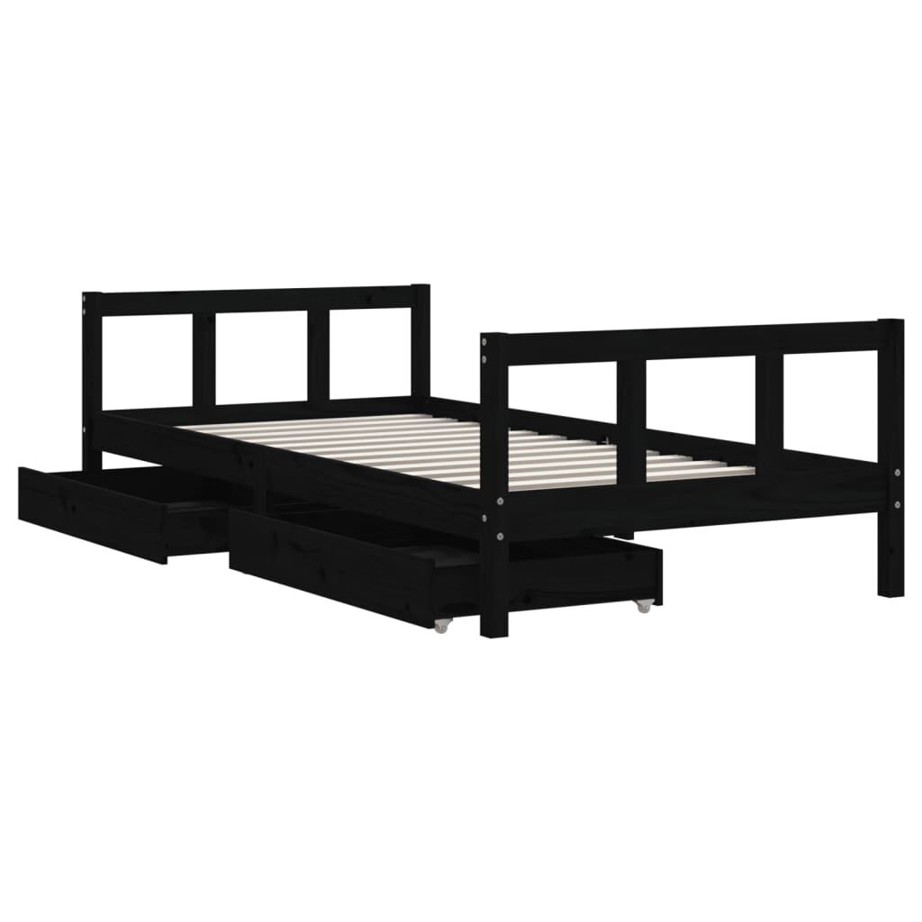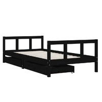 Dream a dream with this wooden kids bed frame. Featuring an elegant and timeless design, it is the perfect choice for your kids! Solid pine wood: The kids bed frame is made from solid pine wood. Solid pine wood is a beautiful natural material. Pine wood has a straight grain, and the knots give the material its signature, rustic look.Sturdy slats: The bed for kids has wooden slats for firm support, ventilation and stability.Storage drawer: The included storage drawers provide ample space for storing small toys, clothing and bedding, keeping the room tidy and clean.Functional headboard and footboard: The headboard and footboard of the toddler bed keep your mattress in place.Considerate design: The height of the kids single bed is designed to be low to the ground, making it easy for your child to get in and out of bed. Good to know:A mattress is not included with this bed. We do offer a various selection of mattresses. You can check our shop for a matching mattress.