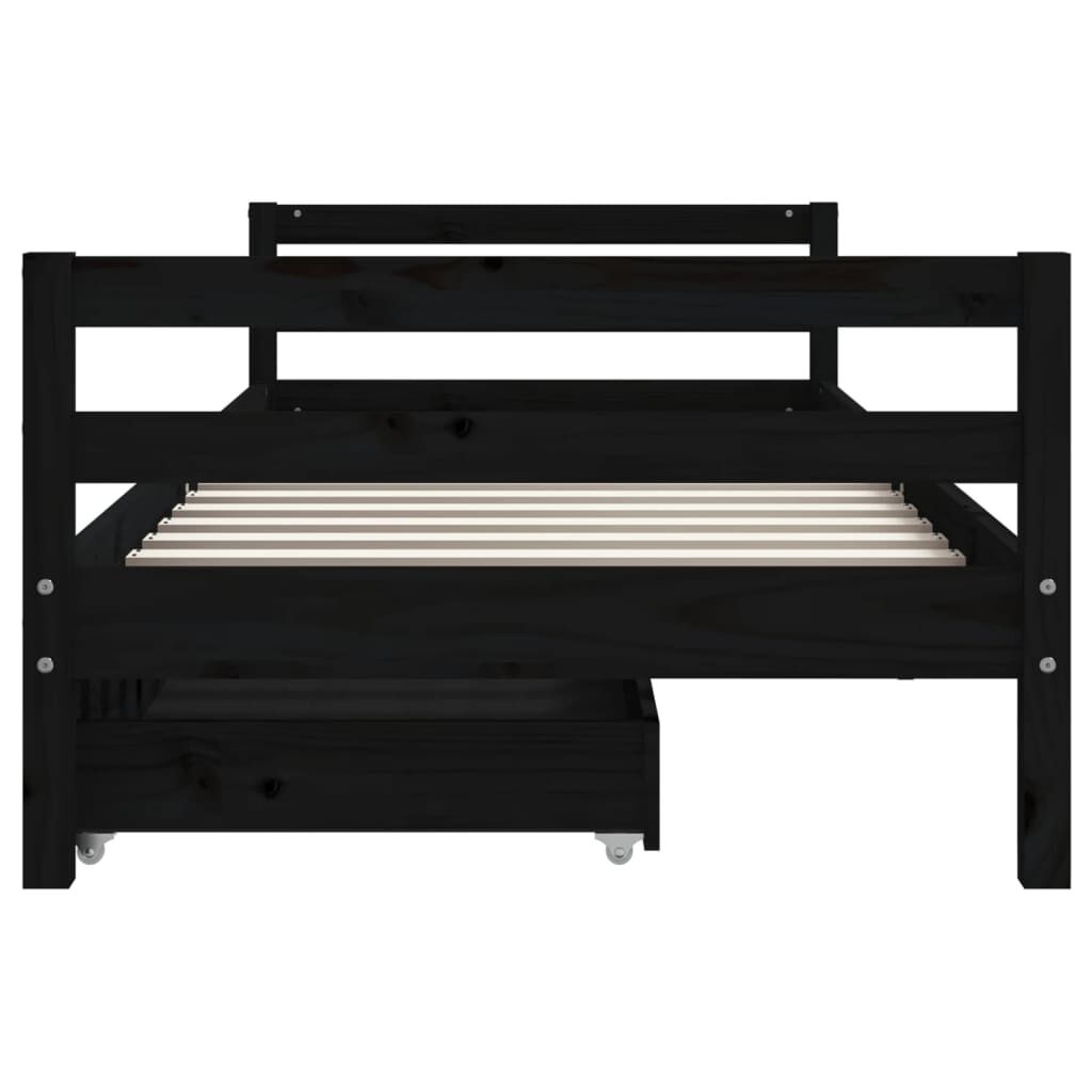 Dream a dream with this wooden kids bed frame. Featuring an elegant and timeless design, it is the perfect choice for your kids! Solid pine wood: The kids bed frame is made from solid pine wood. Solid pine wood is a beautiful natural material. Pine wood has a straight grain, and the knots give the material its signature, rustic look.Sturdy slats: The bed for kids has wooden slats for firm support, ventilation and stability.Storage drawer: The included storage drawers provide ample space for storing small toys, clothing and bedding, keeping the room tidy and clean.Functional headboard and footboard: The headboard and footboard of the toddler bed keep your mattress in place.Considerate design: The height of the kids single bed is designed to be low to the ground, making it easy for your child to get in and out of bed. Good to know:A mattress is not included with this bed. We do offer a various selection of mattresses. You can check our shop for a matching mattress.