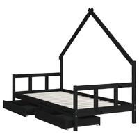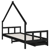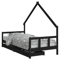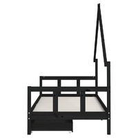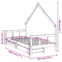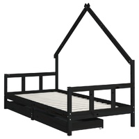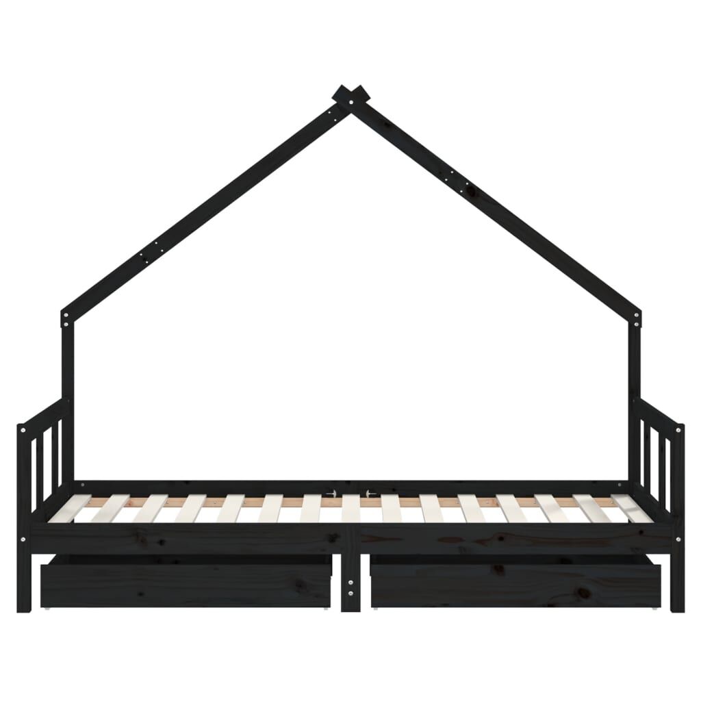 Create a fun-filled space for your little one with this fantastic wooden kids bed frame! Solid pine wood: The kids bed frame is made from solid pine wood. Solid pine wood is a beautiful natural material. Pine wood has a straight grain, and the knots give the material its signature, rustic look.Sturdy slats: The bed for kids has wooden slats for firm support, ventilation and stability.House bed design: This toddler bed featuring a cool yet simplistic design turns bedtime into a fun experience. It offers many possibilities for playing and building your child's little world to stimulate creativity and imagination.Storage drawer: The included storage drawers provide ample space for storing small toys, clothing and bedding, keeping the room tidy and clean.Considerate design: The height of the kids single bed is designed to be low to the ground, making it easy for your child to get in and out of bed.