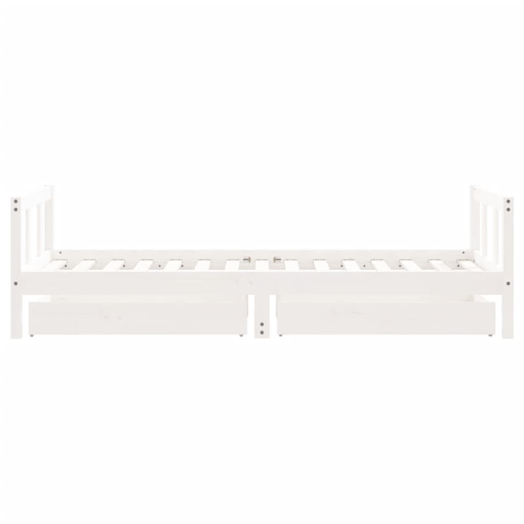 Dream a dream with this wooden kids bed frame. Featuring an elegant and timeless design, it is the perfect choice for your kids! Solid pine wood: The kids bed frame is made from solid pine wood. Solid pine wood is a beautiful natural material. Pine wood has a straight grain, and the knots give the material its signature, rustic look.Sturdy slats: The bed for kids has wooden slats for firm support, ventilation and stability.Storage drawer: The included storage drawers provide ample space for storing small toys, clothing and bedding, keeping the room tidy and clean.Functional headboard and footboard: The headboard and footboard of the toddler bed keep your mattress in place.Considerate design: The height of the kids single bed is designed to be low to the ground, making it easy for your child to get in and out of bed. Good to know:A mattress is not included with this bed. We do offer a various selection of mattresses. You can check our shop for a matching mattress.