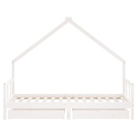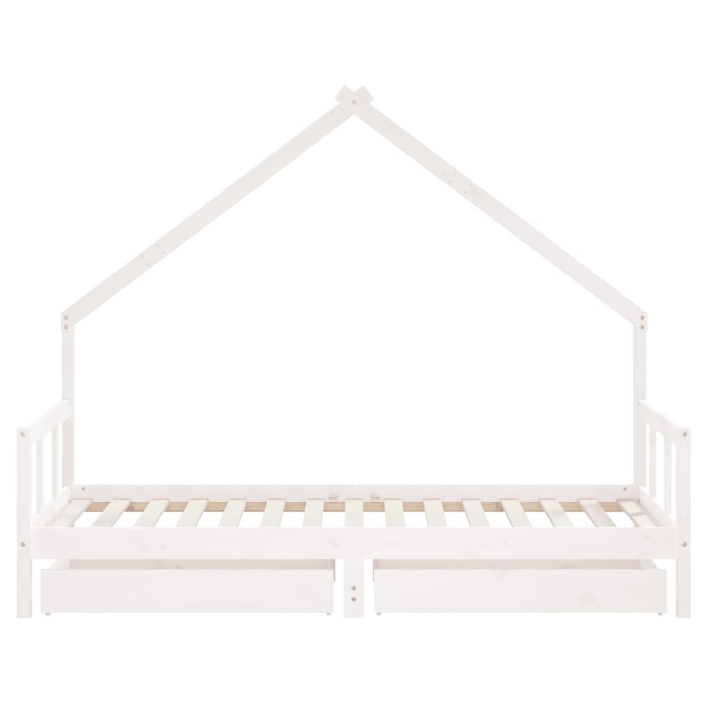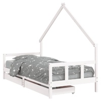 Create a fun-filled space for your little one with this fantastic wooden kids bed frame! Solid pine wood: The kids bed frame is made from solid pine wood. Solid pine wood is a beautiful natural material. Pine wood has a straight grain, and the knots give the material its signature, rustic look.Sturdy slats: The bed for kids has wooden slats for firm support, ventilation and stability.House bed design: This toddler bed featuring a cool yet simplistic design turns bedtime into a fun experience. It offers many possibilities for playing and building your child's little world to stimulate creativity and imagination.Storage drawer: The included storage drawers provide ample space for storing small toys, clothing and bedding, keeping the room tidy and clean.Considerate design: The height of the kids single bed is designed to be low to the ground, making it easy for your child to get in and out of bed.