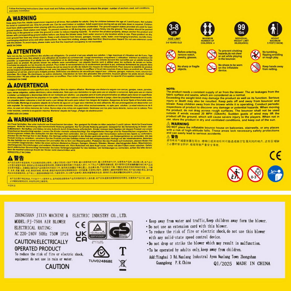 2. Do not set up in windy or rainy conditions: sudden gusts of wind may lift the product off the ground.