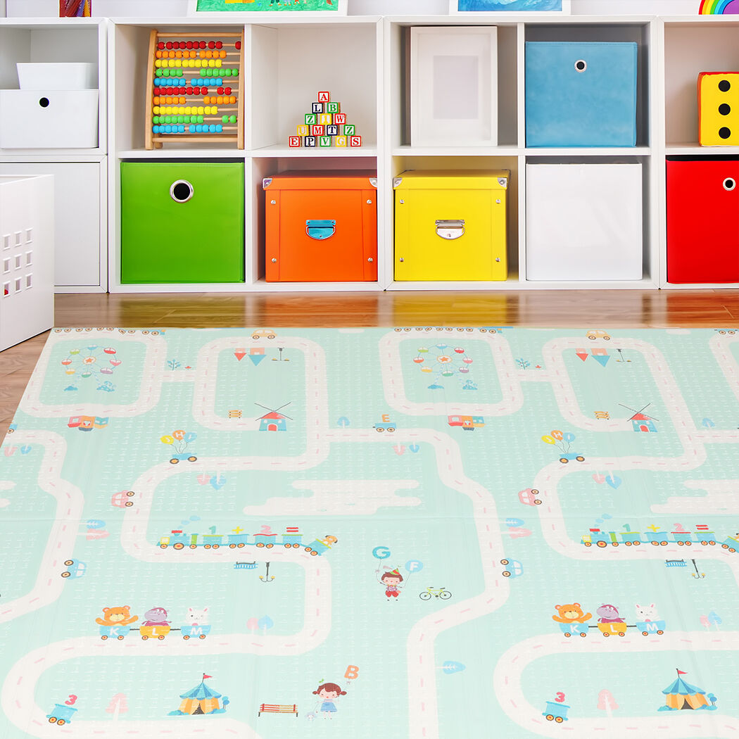 Put some blocks down. A few cars. Some dangling toys. Create a fun play area out of your lounge room with your new foam play mat. Easily pack everything up when it is time to go to bed.