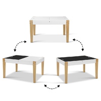 Made from eco-friendly MDF board and Pine wood, the entire ensemble is designed to last and be child-safe with non-toxic white paint, round corners and smooth edges. But best of all, the Table top can be converted from a normal table to a chalkboard desk in minutes. Simply lift up each half of the table and turn them over. It's convenient and opens up a new avenue for your children to draw, scribble and doodle to their heart's content. Better still, beneath the table are four compartments for easy storage of books, stationery and craft materials that your child may require from time to time.